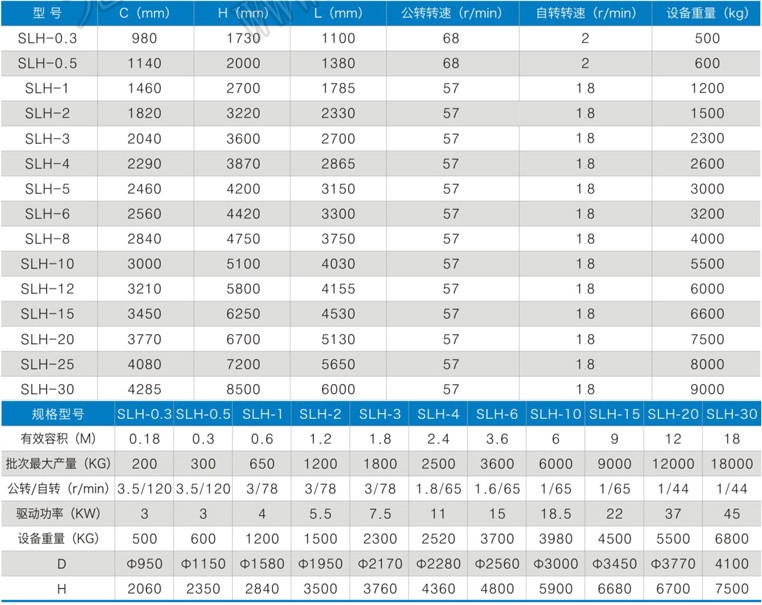 SLH型雙螺旋錐形混合機由傳動部分、筒蓋、螺旋、筒體、出料閥等組成。